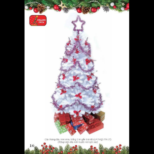 Cây thông đầu tròn 2 in màu trắng gắn trái đỏ -1m2 (tặng phụ kiện kèm trang trí)