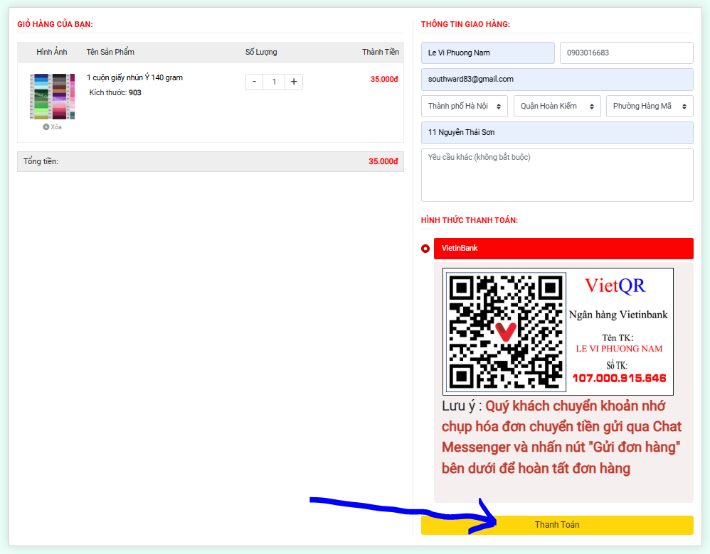 ,chọn hình thức thánh toán và nhấn nút "Thanh toán"
